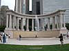 Two glass-brick monoliths make faces at each other, and occasionally spit water. It makes for a fun afternoon in the sun.